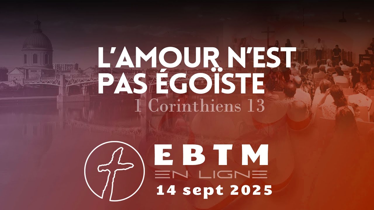 14 septembre 2025L’amour n’est pas égoïste Prédicateur: Vincent Bourrel Série La suprématie de l'amour - 1 Corinthiens 13VisionnerEcouter https://ebtm.fr/audio/2025/250914-vb.mp3Télécharger